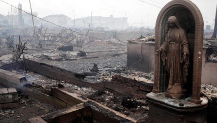 Mormintele au fost incendiate, dar singura rămasă în picioare este o statuie a Fecioarei Maria, conform cbsnews.com.