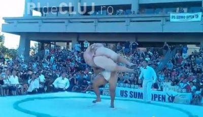 Un moment unic s-a consumat la un campionat de sumo, unde un sportiv a realizat un procedeu spectaculos.
