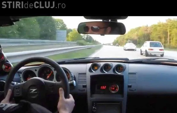 Imaginile au fost surprinse de camera de bord a șoferului din Nissan, care se ia la ”întrecere” cu un alt participant la trafic, ce conducea un Porsche 911.