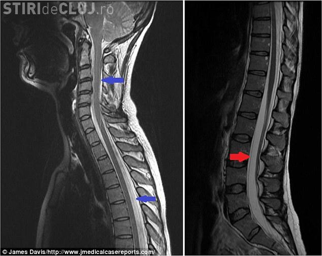 După ce i-au făcut un computer tomograf, medicii au stabilit că lichidul care se află în jurul creierului și a coloanei se scurgea printr-o ruptură musculară.