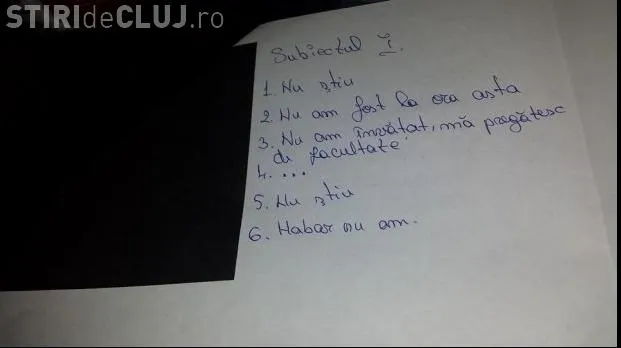 La simularea probei la matematică, o elevă a lăsat foaia goală și a scris replici şocante precum: ”Habar n-am”, ”Nu am fost la ora asta”, ”Nu ştiu”.