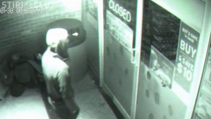 Un clip postat pe Internet și filmat de camerele de supraveghere ale unui supermarket, din SUA, prezintă un bărbat care trece prin ușa magazinului.