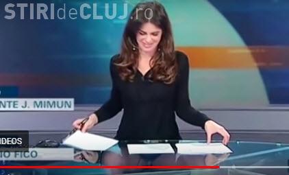 Prezentatoarea italiană Constanza Calabrese a uitat că masa la care prezenta ştirile era transparentă şi camerele au filmat tot.