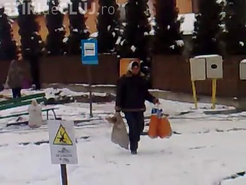 Ocna Mures: Tiganii pescuiesc mancare din craterul care a "inghitit" supermarketul Plus - Vezi VIDEO