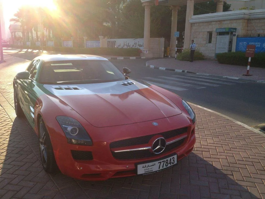 Un utilizator al site-ului Reddit a postat o serie de fotografii cu mașinile din parcarea Universității Americane din Dubai.