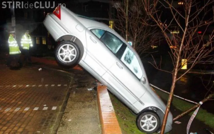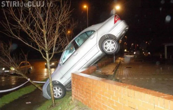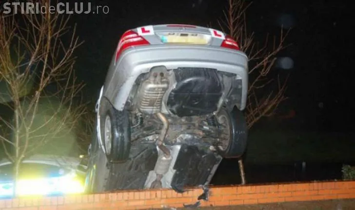 Eleva și instructorul au rămas blocați în mașină, fiind nevoie de intervenția pompierilor pentru a-i salva.