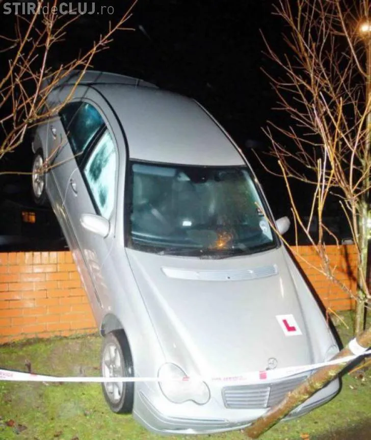La finalul orei, femeia a făcut o parcare peste gardul parcării magazinului Lidl, oprindu-se într-un copac.