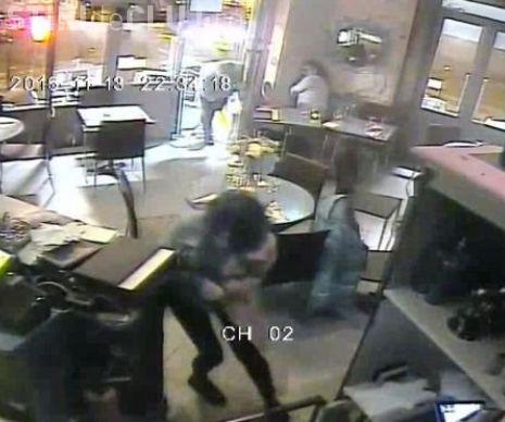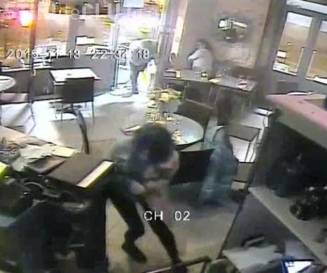 Pe imagini se poate observa cum, inițial, un terorist înarmat cu AK-47 deschide focul din stradă asupra oamenilor aflați la mesele din fața restaurantului. După o rafală de gloanțe care a răpuns mai multe persoane, arma teroristului se blochează, moment în care mai mulți oameni reușesc să scape cu viață, unul dintre ei târând efectiv o persoană împușcată, potrivit dailymail.co.uk.