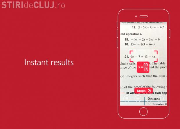 Aplicația se numește PhotoMath și folosește camera telefonului pentru a rezolva exercițiile. Aceasta nu îți arată doar rezultatul final, ci și modul de rezolvare.