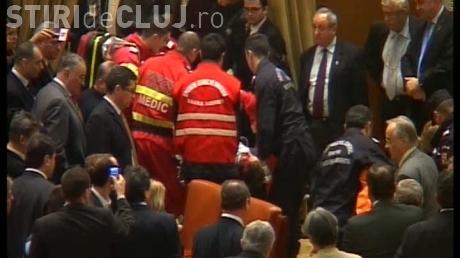 Protest in Parlament! Politia a deschis un dosar penal dupa ce un barbat s-a aruncat de la balcon in Parlament - VIDEO