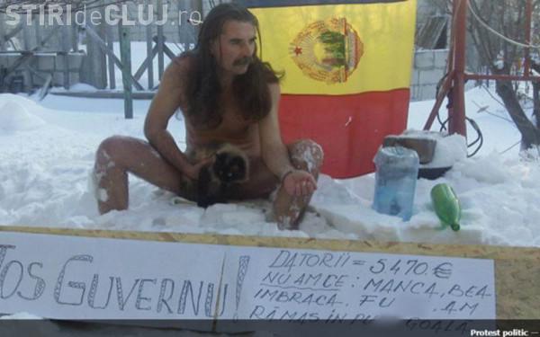 Fotografia unui barbat, care a protestat in pielea goala in zoapada impotriva Guvernului, s-a transformat intr-un viral pe Facebook.