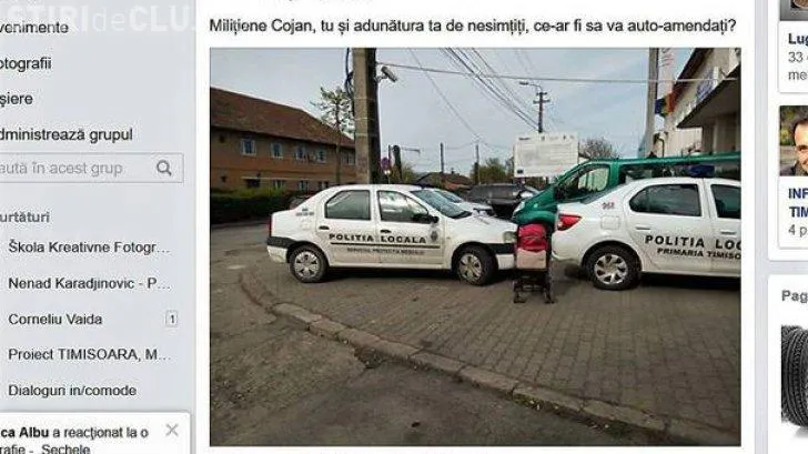 Un bărbat a fost aspru amendat de Poliția Locală după ce a a distribuit pe Facebook o imagine cu două maşini ale instituţiei parcate pe trotuar, iar pietoni nu mai putea trece.