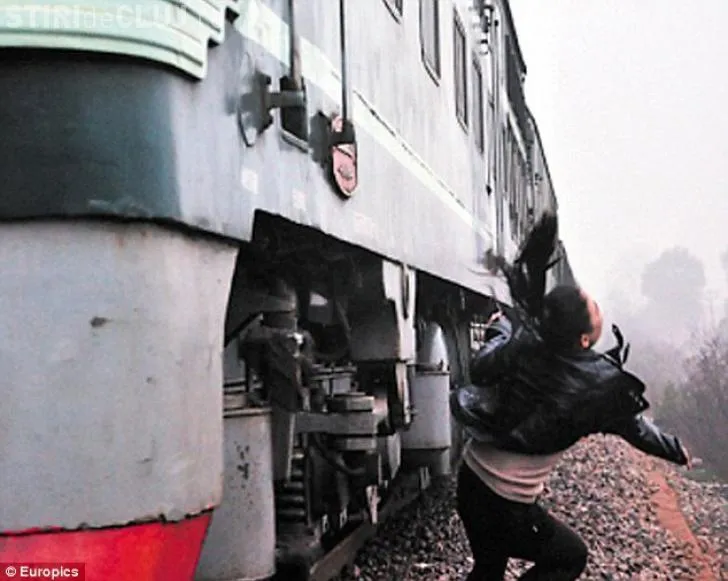 Trenul, care venea cu cica 140 de km/h, era la un pas să o lovească.