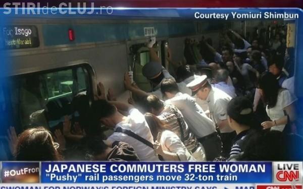 Situație INCREDIBILĂ în Japonia. Pasagerii au împins un tren pentru a salva o femeie VIDEO
