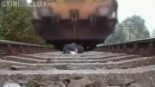 Imaginile socante au fost publicate pe Youtube. Camera a fost amplasata intre linii si apoi s-a intins barbatul si a asteptat sa treaca trenul.
