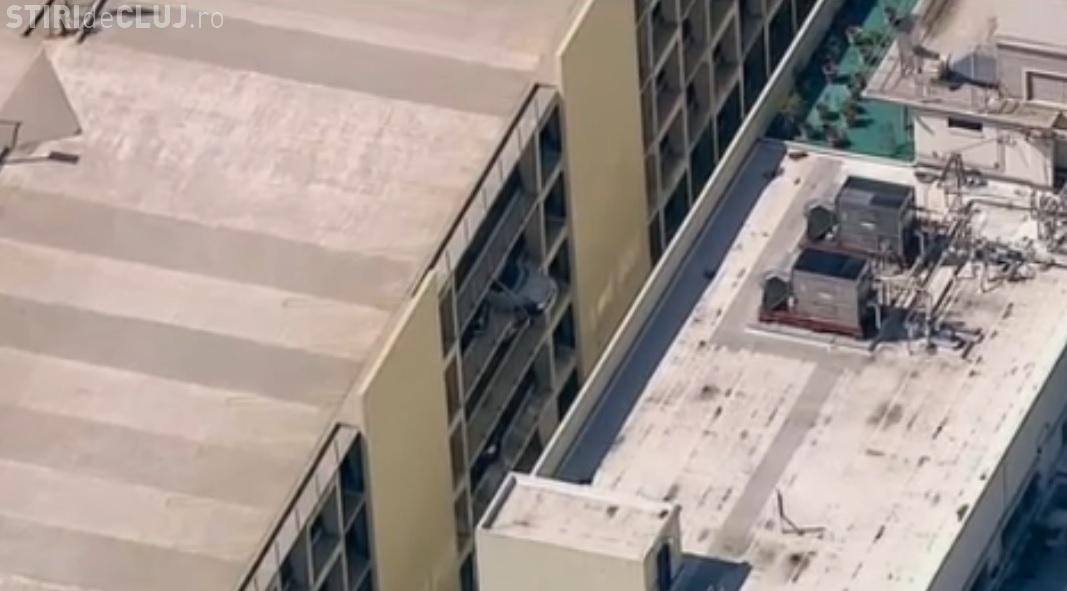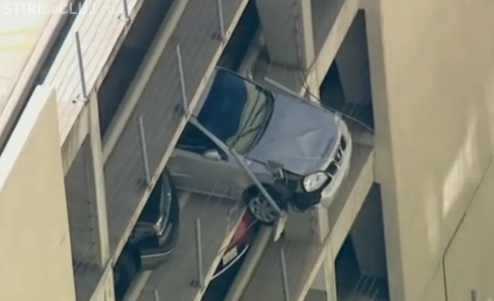 Ea a încurcat frâna cu accelerația și a intrat cu mașina în barierele de securitate ale parcării. Autoturismul a rămas suspendat în aer, dar nu s-a prăbușit.