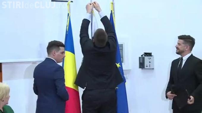 La întâlnirea dintre şefii de guverne din România şi Estonia, steagul Estoniei a fost montat invers.