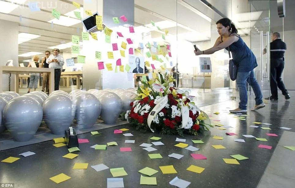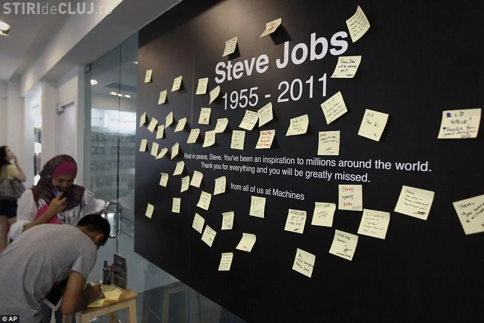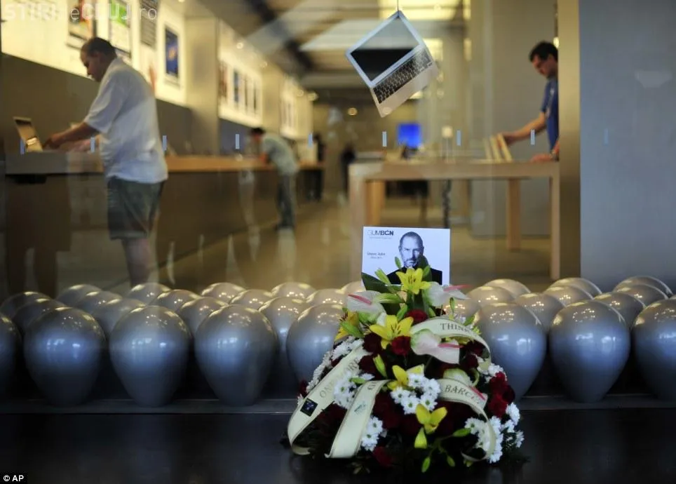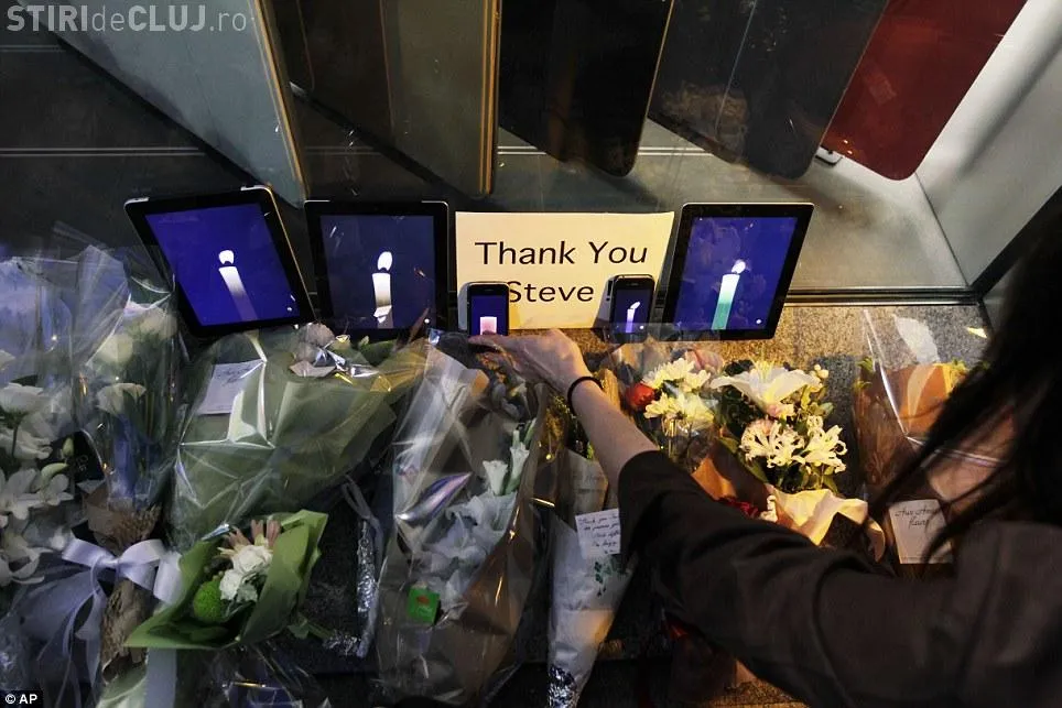 Steve Jobs, co-fondatorul Apple, a fost omagiat in toata lumea in preajma magazinelor de fani si angajati.