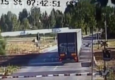 Șoferul a avut inspirația de a scoate cabina de pe traiectoria trenului, care a spulberat remorca. Bărbatul aflat la volan a scăpat fără vreo rană, el fiind filmat în timp ce cobora buimac din cabină.