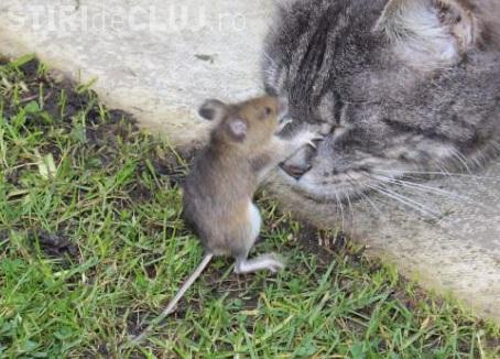 Momentul in care un soricel a infruntat o pisica si a scapat cu viata a fost surprins intr-o fotografie de o englezoaica.