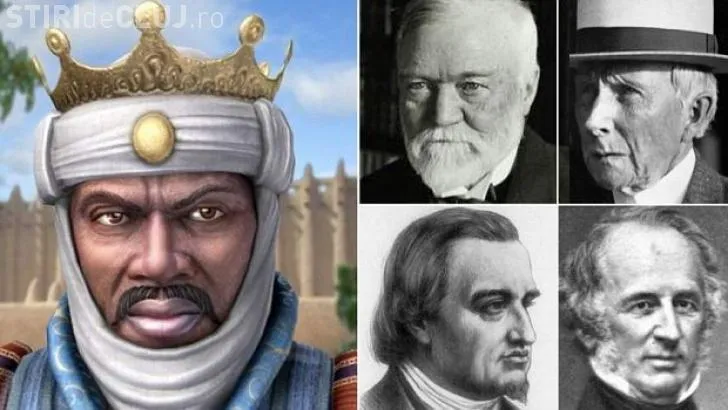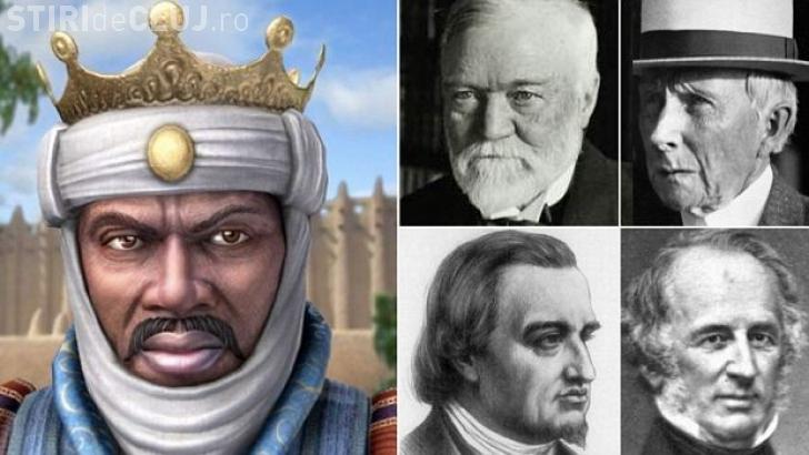 Prima poziție este ocupată de Mansa Musa I din Mali, care a avut o avere echivalentă cu 400 de miliarde de dolari din prezent la moartea sa, survenită în 1331. Mansa Musa I a condus Imperiul Mali, care s-a întins pe o suprafaţă ocupată în prezent de statele Ghana, Timbuktu şi Mali, şi s-a îmbogăţit din producţia de sare şi aur.