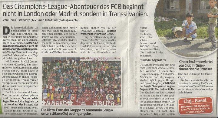 Prapastia dintre sarac si bogat merge insa foarte departe. In timp ce in "Pata Rat" dependentii de droguri, alcoolicii, somerii si copii subnutriti, lupta zilnic impotriva foamei si setei, banii nu joaca nici un rol la adversarul Baselului din Liga Championilor, CFR Cluj. Patronul clubului se numeste Arp?d Paskany si este un om de afaceri de success. In ultimii ani el a pompat in Club peste 100 de milioane de franci. Fanul Ferrari si Iron Maiden, vrea ca dupa Triplul National (n. red. cele trei trofee obtinute de CFR Cluj) din ultimul an, sa faca furori acum si in Europa.