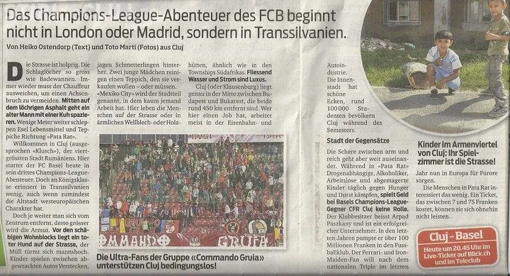 Articolul scris de Heiko Osterhop (text) si Toto Marti (foto) in publicatia Blick, in care Clujul este descris ca un oras mizerabil, plin de cocioabe, ca in Africa de Sud, a starnit revolata clujenilor