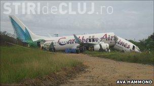 Avionul, un Boeing 737-800, apartinand Caribbean Airline, decolase din New York si la aterizarea pe Aeroportul Cheddi Jagan a depasit pista, cel mai probabil din cauza ploii, informeaza bbc.co.uk.