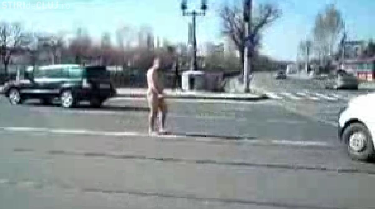 Un barbat a fost filmat in timp ce se plimba in pielea goala pe strada, printre masini - VEZI VIDEO