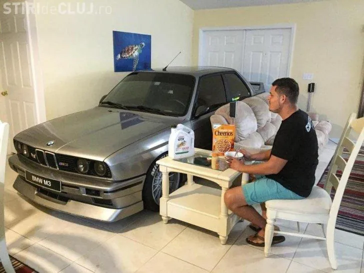Un bărbat nu se poate despărți de BMW -ul său. L-a parcat în sufragerie - FOTO