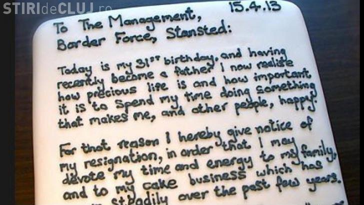 Un bărbat și-a scris demisia pe un tort chiar de ziua lui