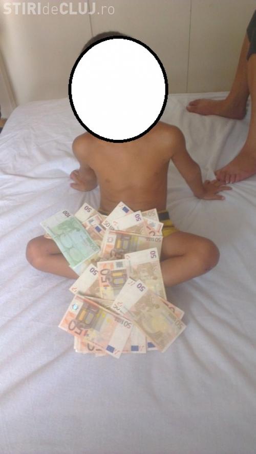 Smartphone -ul este folosi de o familie din Tulcea, iar în fotografii apar diverse persoane înconjurate de mormane de bani.