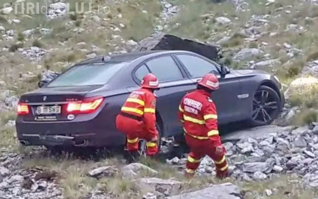 Un BMW a căzut într-o râpă pe Transfăgărăşan. Șoferul își făcea poze și nu a tras frâna de mână