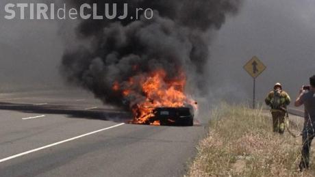 Barbatul a iesit in ultimul moment din masina cuprinsa de flacari si s-a salvat. El dorea sa cumpere masina, al carui pret poate ajunge, cu toate optiunile, la 350.000 de euro.