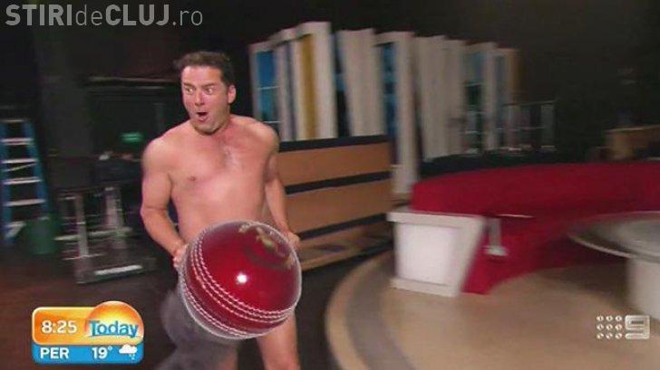 Un prezentator TV a pierdut pariul și a apărut gol la televizor - VIDEO