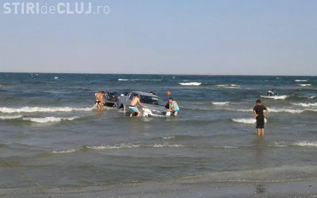 Un bucureștean cu maşină 4 X 4 a intrat în mare, pe plaja de la Năvodari, şi a rămas blocată în nisipul mării, la circa 20 metri de ţărm.