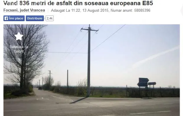 Un român a scos la vânzare un kilometru din drumul național E85, din zona orașului Focșani.