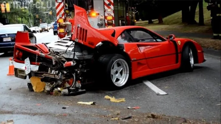 Un șofer a făcut praf un Ferrari F40 pe străzile din Vancouver, după ce a intrat într-un stâlp. Din cauza ploii, bolidul a derapat.