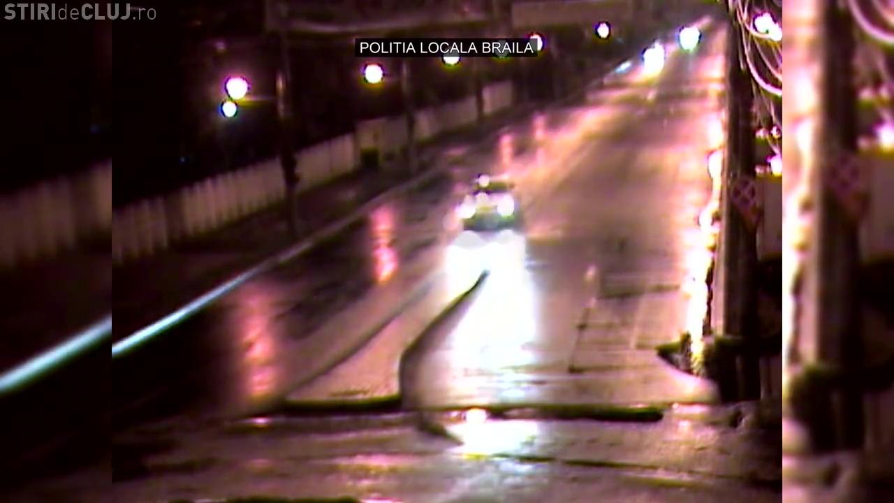 Un șofer a zburat ca în filme peste un sens giratoriu din Brăila.