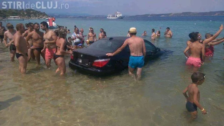 Un BMW din Ardeal a devenit vedetă pe internet, după ce a ajuns cu mașina în mare.