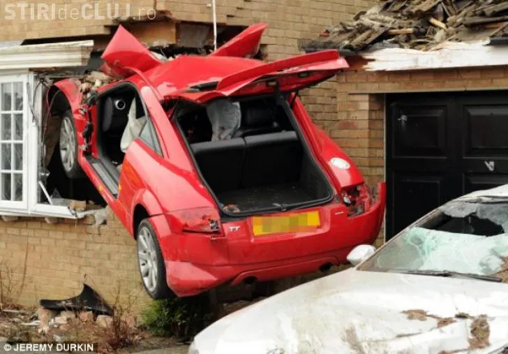 Un șofer britanic a comis un accident grav, dar spectaculos. La bordul unui Audi TT, bărbatul s-a ”înfipt” pur și simplu cu mașina într-o casă.