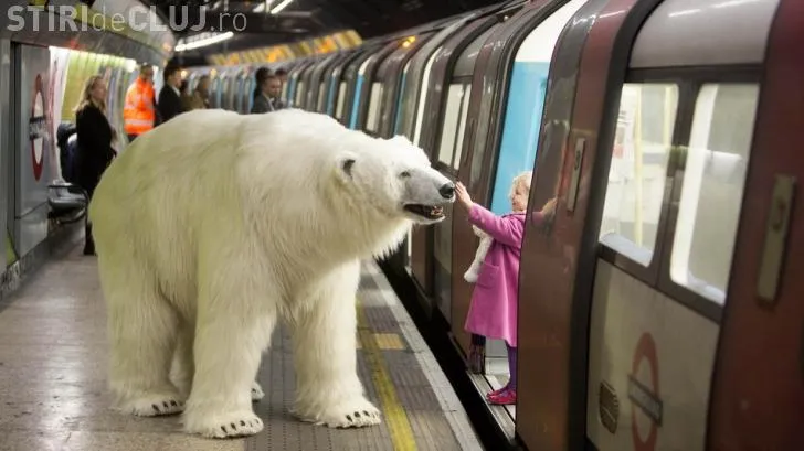 Londonezii au avut o surpriză în metrou, când s-au întâlnit cu un urs polar în toată splendoarea lui.