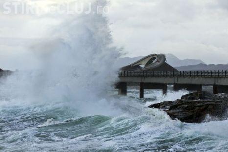 Multi turisti vin toamna sau iarna pe Atlantic Road pentru a se bucura de spectacolul unic oferit de furtunile puternice care matura strada. in timpul constructiei Atlantic Road, au avut loc nu mai putin de 12 uragane.