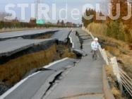 In prima fotografie, realizata dupa cutremurul din 11 martie 2011, se poate vedea drumul rupt in urma alunecarilor de teren provocate de seismul puternic.