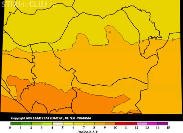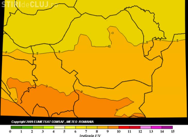 Harta radiatiilor arata ca in jumatatea sudica a Romaniei, inclusiv intreg litoralul Marii Negre, indicele UV este opt. Medicii sfatuiesc sa nu va expuneti la soare in intervalul 11.00 - 16.00.