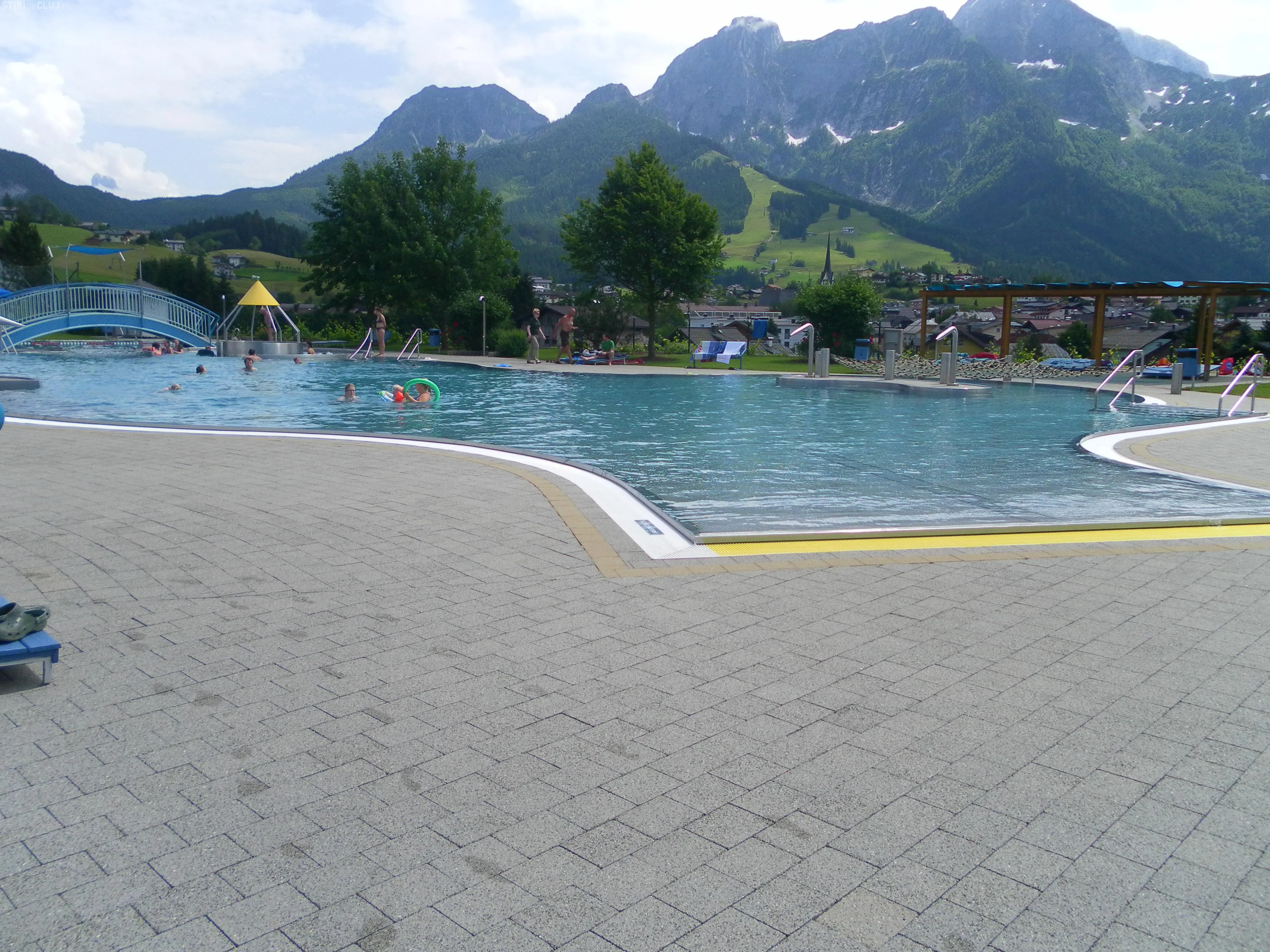 După ce am terminat traseul, de două ori, am vizitat waterpark-ul Adventure WaterPark unde găseşti piscină cu flux circular, 2 tobogane, fântâni de apă, bazine special amenajate pentru copii sau sportivi şi o privelişte de poveste, la poalele Alpilor.