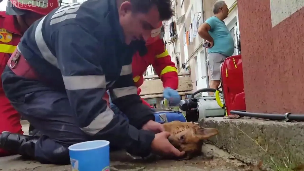 Pompierii au reuşit să scoată din apartament şi un căţel, care nu mai dădea semne de viaţă. Un pompier a resuscitat animalul, fiind ajutat şi de personalul SMURD.