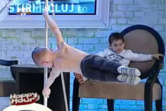 Acum a fost din nou invitat in direct si a stat suspendat in maini, paralel cu solul, timp de "aproape 50 de secunde", cum a spus tatal lui, prezent si el in platou, la emisiunea lui Maruta. Recordul precedent era de 39 de secunde.