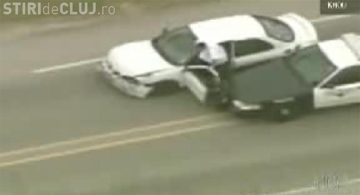 Politistii americani au fost protagonistii unei noi urmariri ca in filme. Ei au incercat sa opreasca un autoturism de culoare alba condus de un barbat, care a facut tot posibilul pentru a nu fi prins.