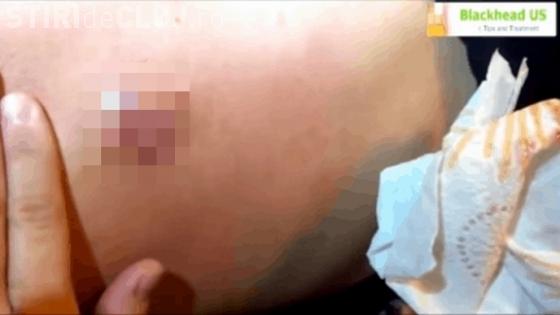 Asistenta din cabinet a folosit un bisturiu pentru a face o inciziem, iar lichid sub presiune a țâșnit cu putere. La final a folosit mai multe șervețele pentru a strânge coșul uriaș.